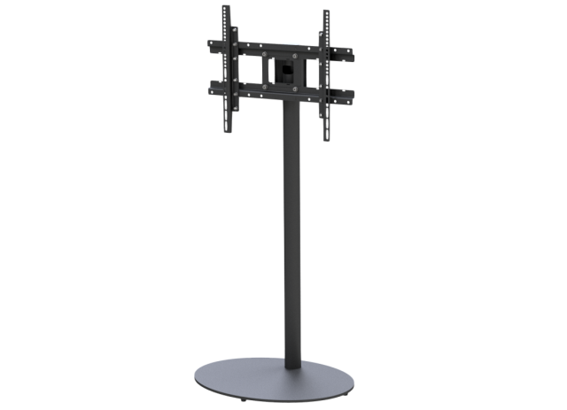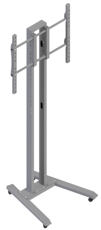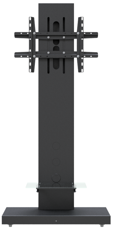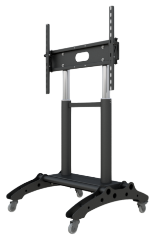Flat panel floor stand, with maximum load capacity up to 50kg, with telescopic tubes for height adjustment, characterized by high quality and utility. It is accompanied by a great variety of accessories such as: equipment shelves, speaker mounts, video conference mounts, etc.
