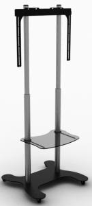 Flat panel floor stand with maximum load capacity 105kg, suitable for big size monitors, characterized by high quality and stability. It is accompanied by a variety of accessories such as: equipment shelves, video conference mounts, pc mounts, etc.
