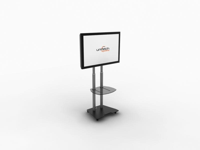 Flat panel floor stand with maximum load capacity 50kg, with telescopic tubes for height adjustment, characterized by high quality and utility and elegant style. It is accompanied by a great variety of accessories such as: equipment shelves, speaker mounts, video conference mounts, flat panel mounts with tilt, etc.