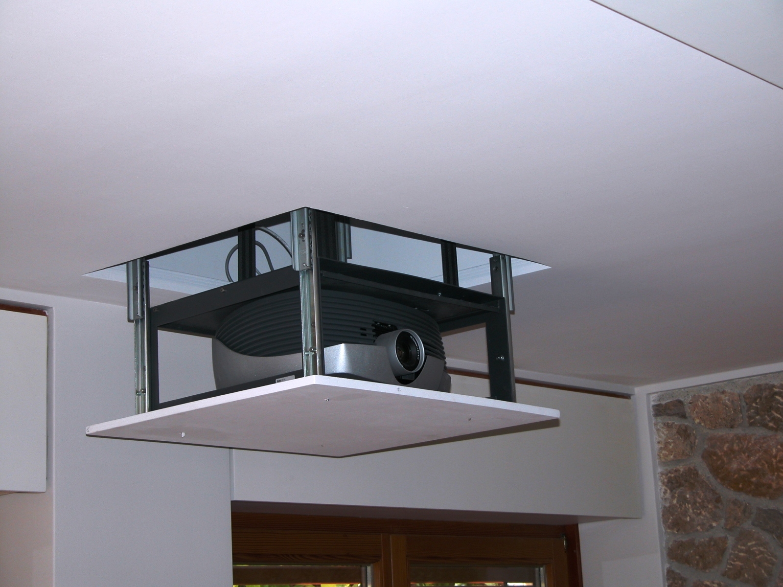 Projector Ceiling lift, suitable for most projector models. PLC V2.3 is characterized by its solid constraction, excellent utility, great stability and absolute accuracy in up and down position. Its run length is 780mm and it provides projections solution in every room.